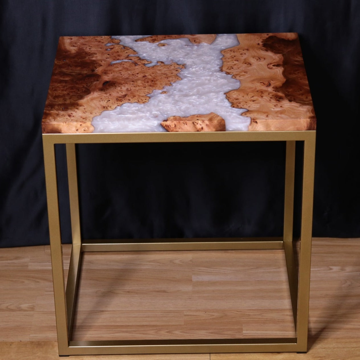 This pearlescent burl Elm side table is a versatile piece that can be used for multiple applications, whether its used for a coffee table, a side table to accompany a seating area, an end table, an ornament table or a bedside table, the applications are limited to that of the owners imagination.